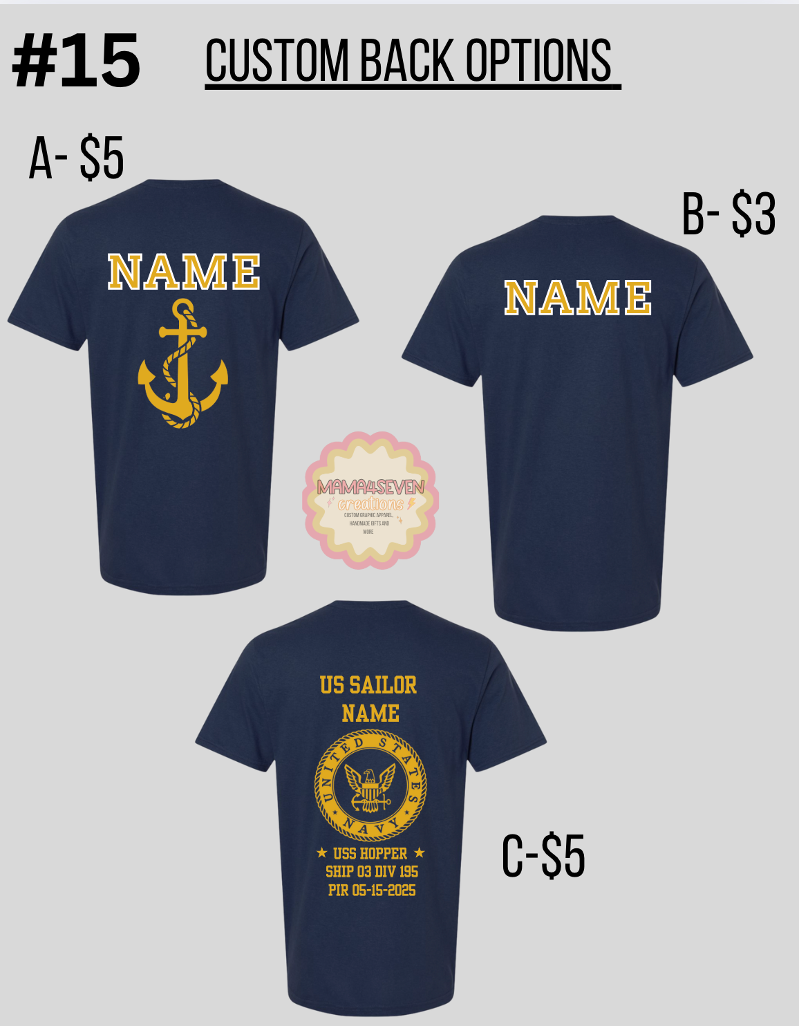 Navy family shirt Add-on, Custom back and sleeve options for Navy apparel